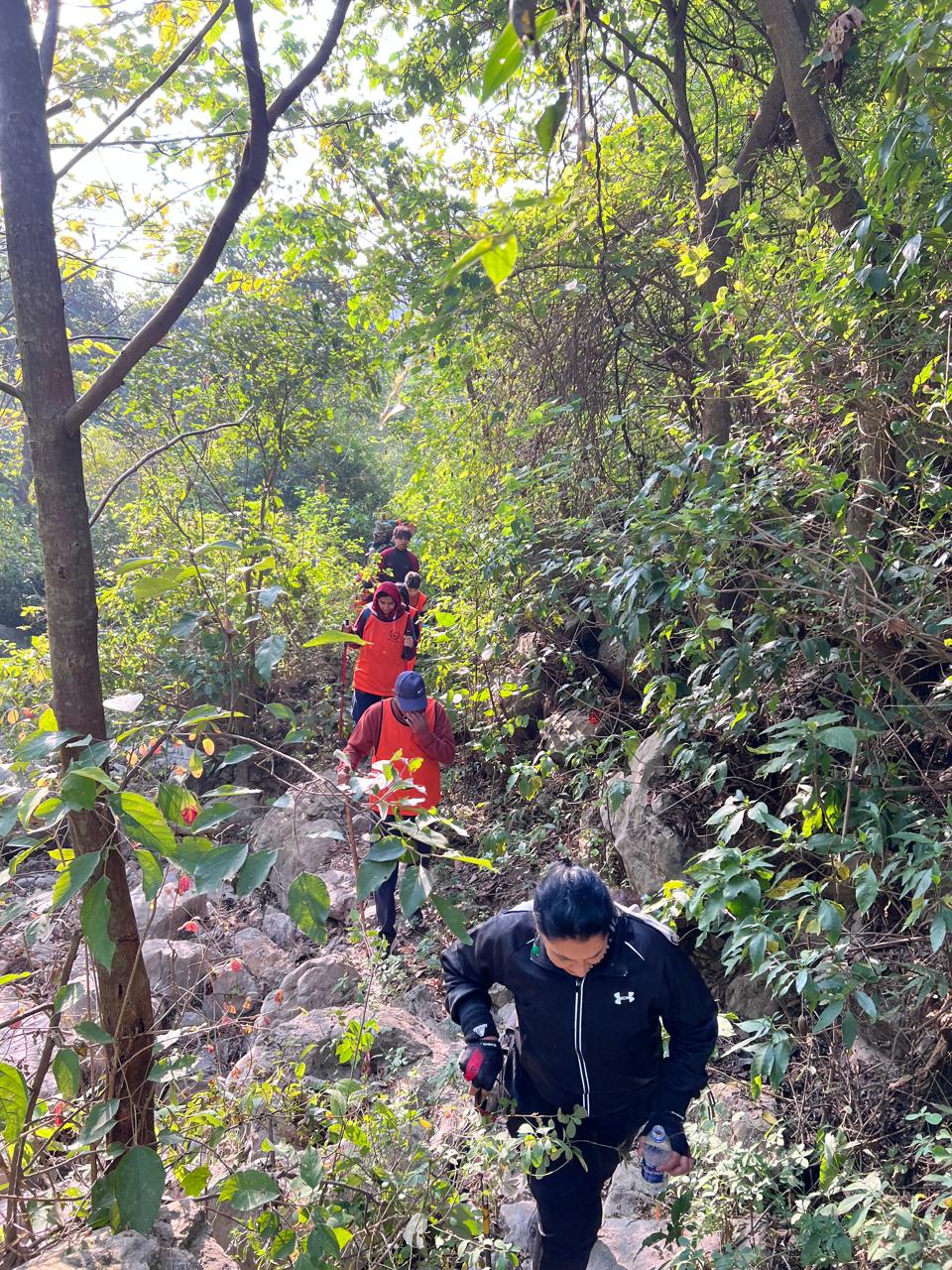 Excitement filled the air—especially among the children—running freely in the open grounds under the bright sun. The hikers proceeded in a line through the narrow trail of Ratta Hottar, a serene green valley wrapped in dense forest.