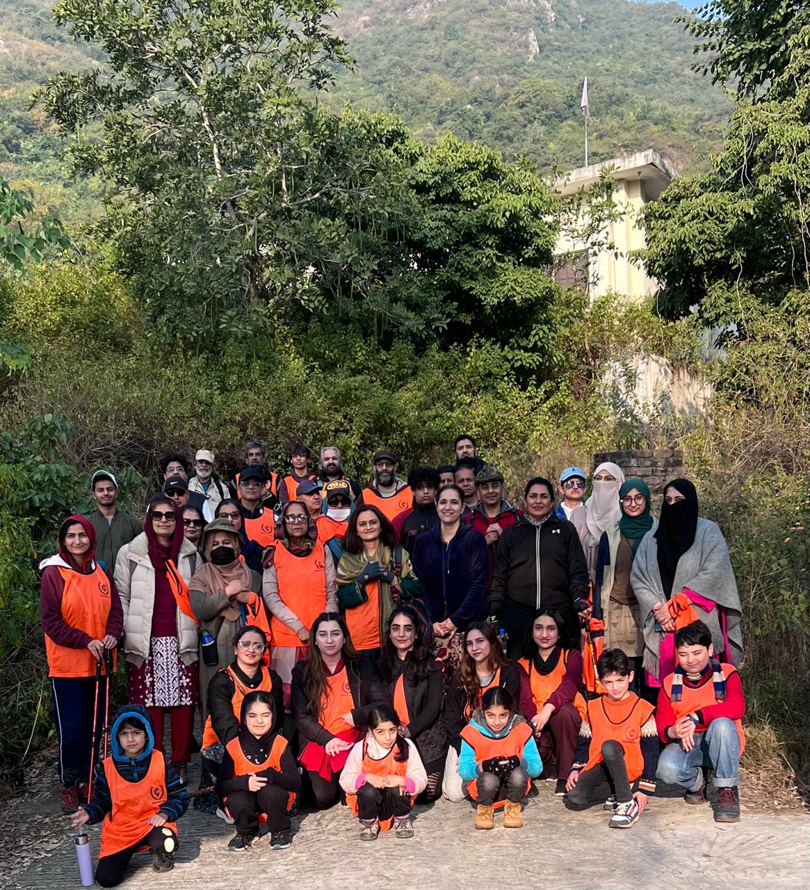 On a beautiful, golden, sunlit morning, 58 hikers gathered at the Ratta Hottar spot in front of the Gillani Shrine, including children, young boys and girls, and participants of mature age.